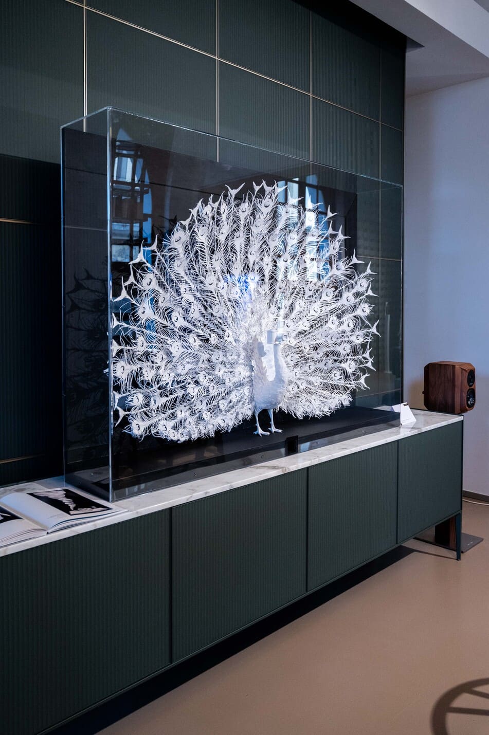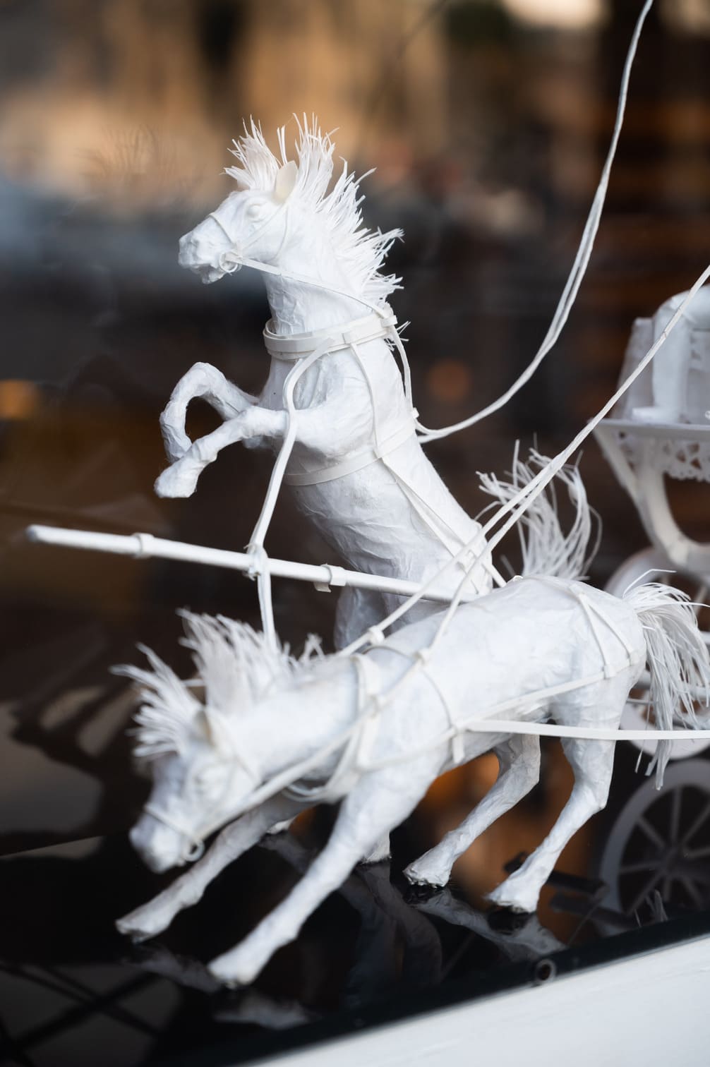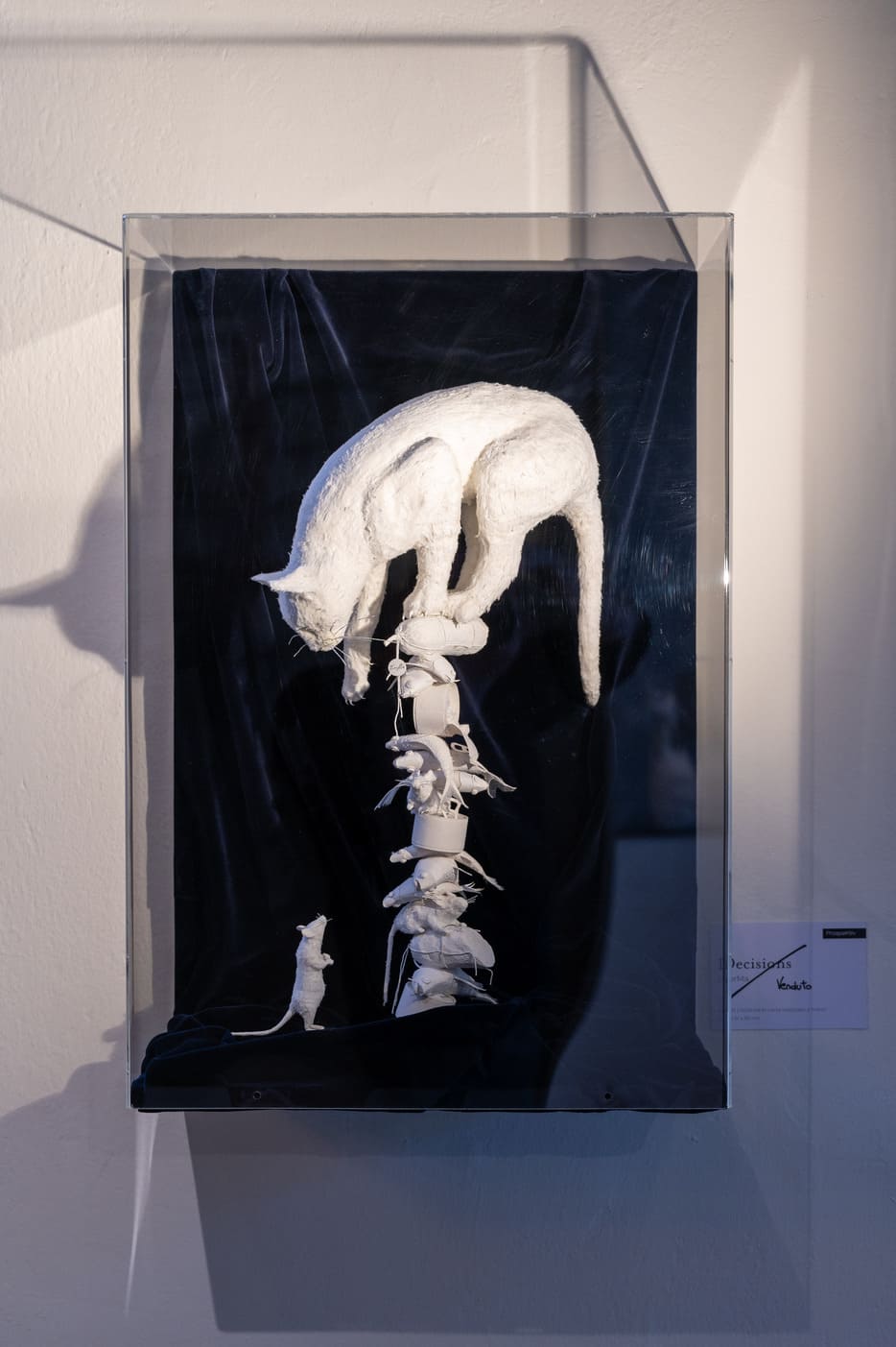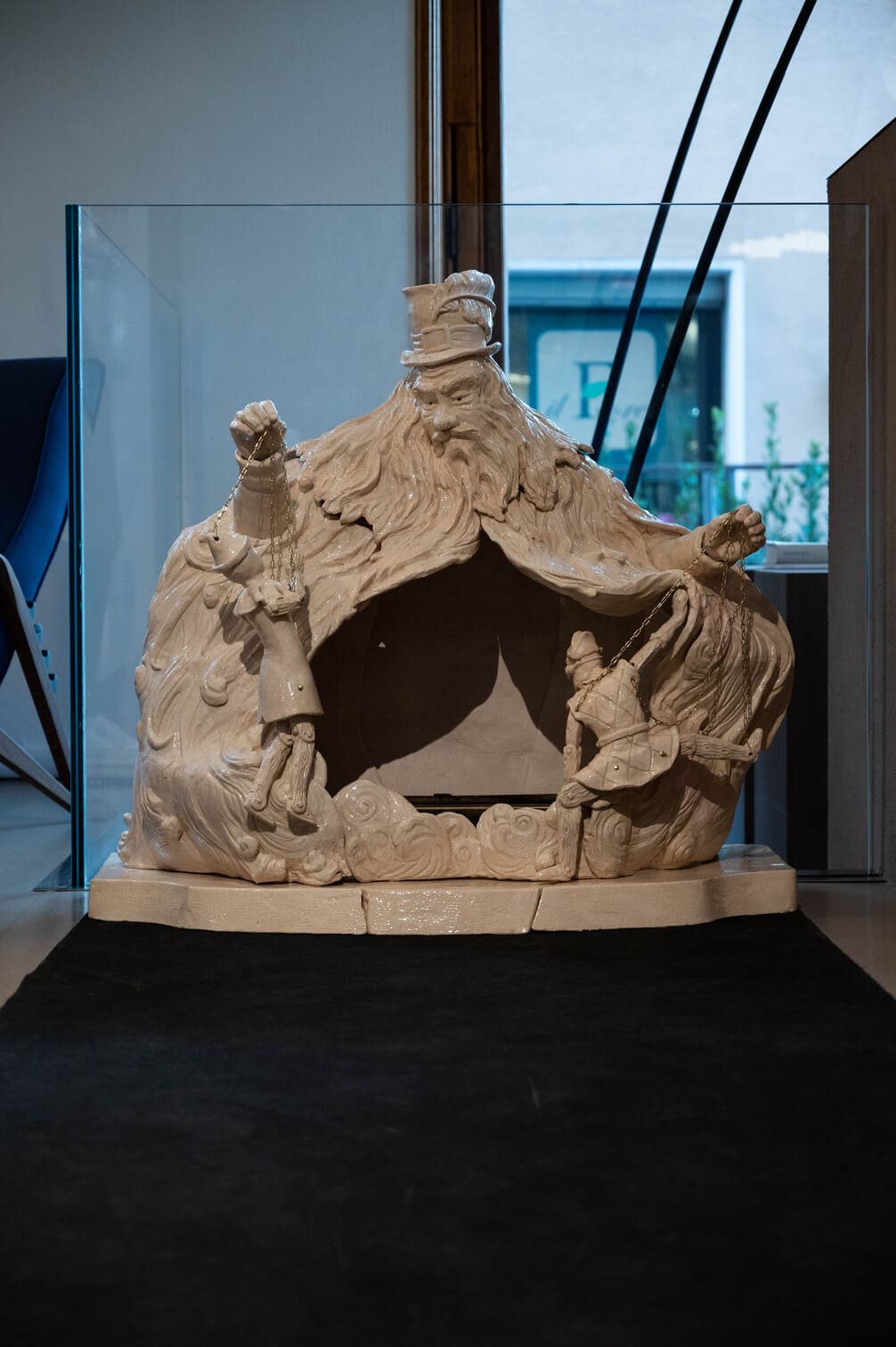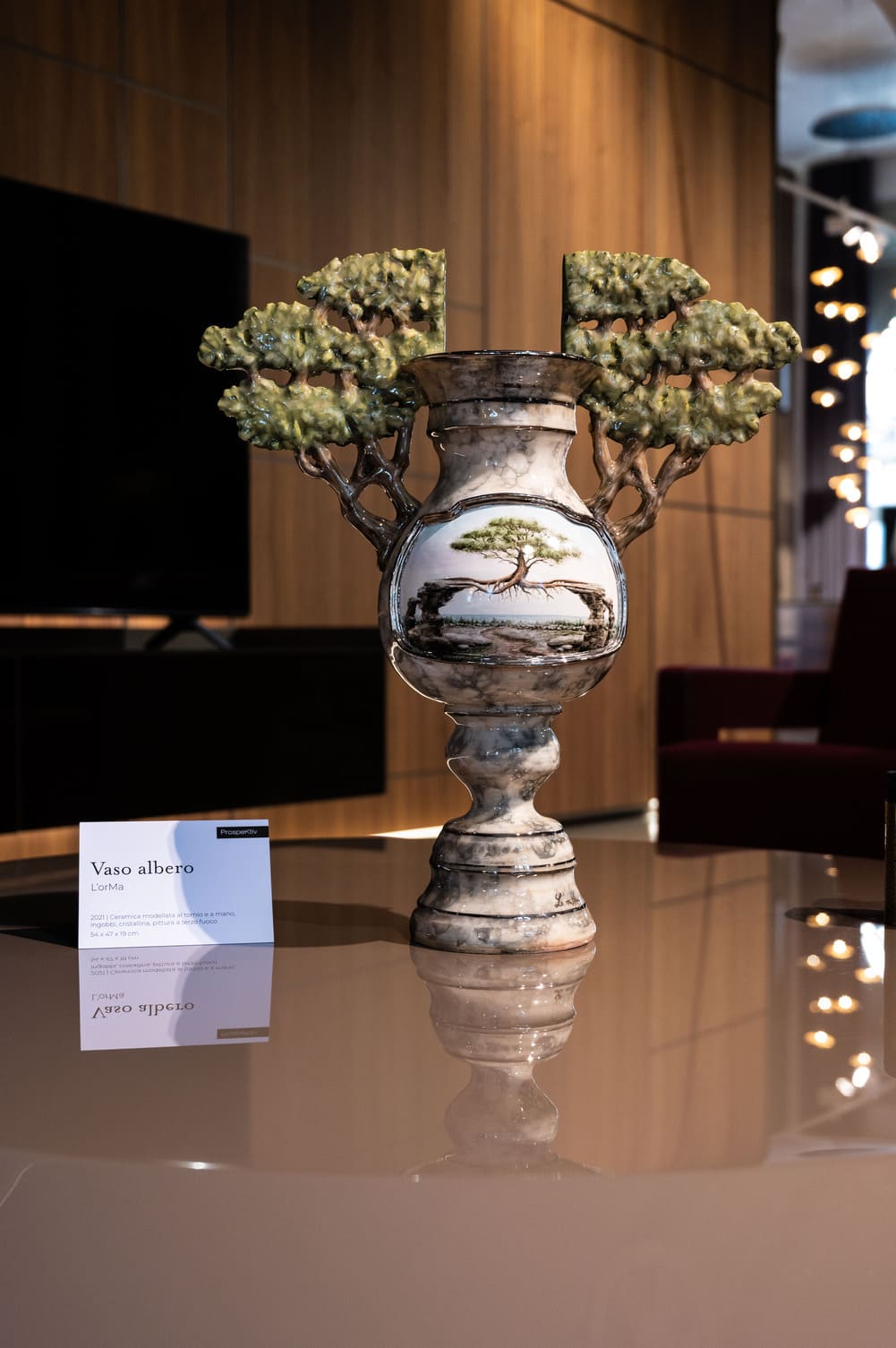 Le opere d’arte di L’orMa erano il cuore dell’evento, e abbiamo cercato di presentarle in modo tale da farle risaltare al meglio. Realizzate con diversi materiali come la carta, resine vegetali, terra e ceramica, ricordavano i passaggi fondamentali di una delle favole più belle di tutti i tempi: Pinocchio.