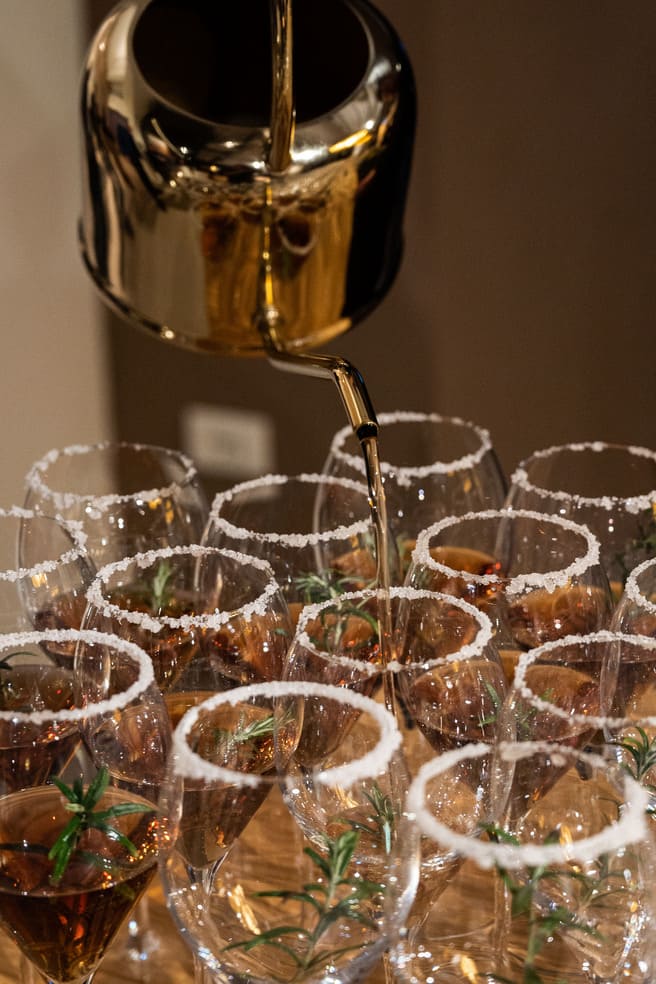 Per quanto riguarda le bevande, abbiamo scelto di offrire una vasta gamma di drink, dai cocktail classici a quelli più innovativi. Abbiamo lavorato con bartender professionisti per creare drink personalizzati che riflettessero lo stile dell’artista e dell’evento. Inoltre, abbiamo scelto di offrire vini pregiati per celebrare l’occasione.