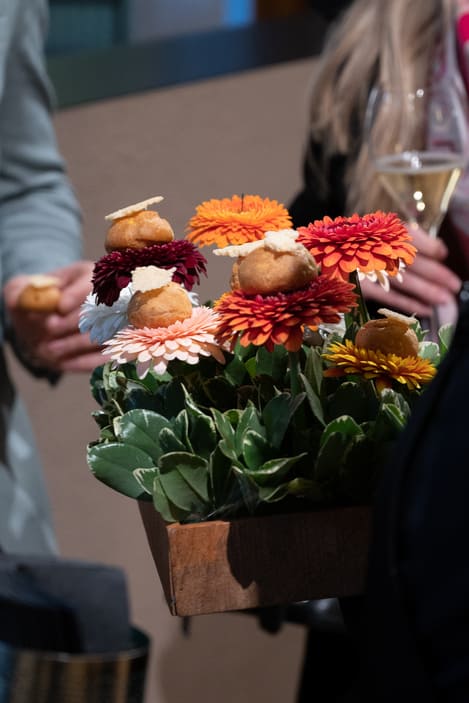 L’assortimento di finger food offerto ai nostri ospiti è stato pensato per soddisfare i gusti di tutti. Abbiamo incluso piatti vegetariani, senza glutine e senza lattosio per accogliere le diverse esigenze alimentari dei nostri ospiti. Inoltre, abbiamo curato la presentazione dei piatti, utilizzando stoviglie e bicchieri di design per creare un’esperienza visiva eccezionale.